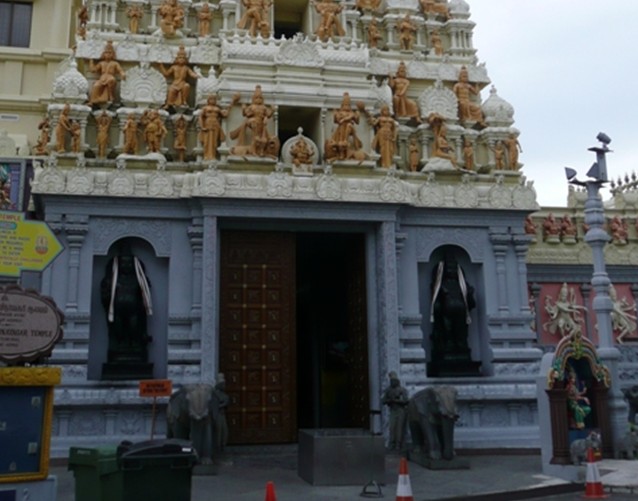 建于19世紀(jì)中旬的圣帕加維那雅加廟于2003年重建。值得注意的是它那有著印度南部科羅曼代爾海岸Chola建筑風(fēng)格的Rajagopuram門塔。Cholas人是印度歷史上最偉大的寺廟建筑家。圣帕加維那雅加廟最獨(dú)特的地方在于大廳里的四根花崗巖石柱。每根石柱上都有八個(gè)雕像,加起來(lái)便組成了維納雅加王(Lord Vinayagar)的32種不同形象。