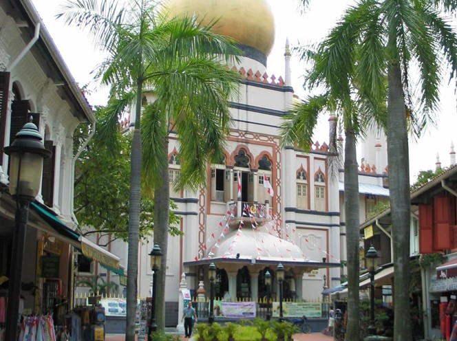 蘇丹回教堂(Sultan Mosque)是新加坡5座被列為國家古跡之一的回教堂,外觀最堂皇的。它有洋蔥型的大圓頂,對(duì)稱的宣禮塔,有點(diǎn)像印度的泰姬陵?;亟烫梦挥诟拾窀衲蠚v史保留區(qū),建造于20年代,歷史雖然并不是最悠久的,但是這座回教堂對(duì)本地回教徒來說卻有特別意義。主要的原因是甘榜格南是新加坡最悠久的回教族群聚居地。這里不少街道都是以中東地名命名的。