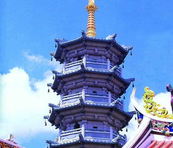 蓮山雙林禪寺又稱雙林寺,創(chuàng)建于1898年,是新加坡的古跡之一。雙林寺是為紀(jì)念佛陀釋迦牟尼的誕辰和涅槃而建。以“雙林”代表大乘涅槃之“常樂我凈”,以“蓮山”表示僧伽叢集如林,值得世人推崇高瞻。雙林寺具有濃厚的閩南式傳統(tǒng)建筑風(fēng)格,初建時(shí)按古廟的禪宗叢林布局,后修復(fù)為完整的佛教叢林建筑,有牌樓、照壁、半月池、山門、天王殿、大雄寶殿、法堂、龍光寶塔。寺前照壁上題有“南無觀世音菩薩”七個(gè)楷書貼金字。