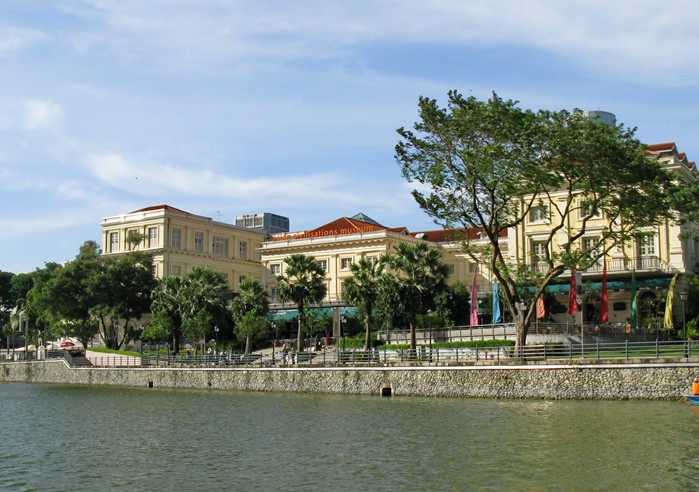 1864年建於皇后坊的亞洲文明博物館 (Asia Civilisations Museum),早期是英國殖民地以及現任政府的辦公大樓,有著濃厚的英式新古典主義風格的建筑。進入該博物館內,重點在介紹新加坡歷史源流,當游人進入展廳,曾是沿著新加坡河岸發(fā)展的新加坡,不斷有中國帆船、印度船、 阿拉伯獨桅帆船、葡萄牙戰(zhàn)艦和武吉士人(Bugis)的縱帆船造訪這個質樸的海港,館內過往的影像面對窗外運河龐大商船吞吐的海港,今非昔比的繁華景象,形成了一個強烈的對比。這就是亞洲文明博物館企圖讓訪客深入了解新加坡的特殊文化。19世紀英人萊佛士爵士為拓展英國在亞洲的貿易發(fā)展,奠定了這個小漁港的未來發(fā)展。