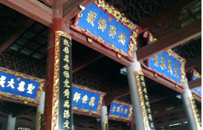 現(xiàn)存廟宇建于咸豐元年十二月至四年六月,按中軸線自南至北依次為外門埕、欞星門,泮池,左右有廊對(duì)列,大成門的樓廳,東、西有殿廡對(duì)列,月臺(tái)、大成殿、后照壁等,占地7552平方米,建筑面積4000平方米。解放后,曾作為學(xué)校、紅衛(wèi)商場(chǎng)、少年宮等場(chǎng)所。1961年9月被福州市人民委員會(huì)公布為第一批市級(jí)文物保護(hù)單位;1996年9月2日被福建省人民政府公布為省級(jí)文物保護(hù)單位。欞星門亦稱先師門。現(xiàn)存石構(gòu)件屬明代所建。六柱三開間,對(duì)稱布局,每根柱腳用兩塊夾桿石前后對(duì)夾鎖固。東西兩翼墻上鑲嵌著“江漢秋陽(yáng)”、“金聲玉振”聯(lián)句石刻,花崗巖,長(zhǎng)2.62米、寬0.73米、楷書、陰文。大成門古稱戟門,面闊五間,進(jìn)深二間。中三間屋面高出兩邊間,青石抱鼓石3對(duì),石檐柱八根。大成門左內(nèi)側(cè)豎著《咸豐元年重建福州碑記》石碑二方,通高2.68米、寬0.84米、厚0.21米,郭柏蔭撰文并書寫190字碑文,版權(quán)所有山東聊城聊之旅國(guó)際旅行社有限公司,轉(zhuǎn)載必究!劉永松篆書碑額,匠蔣學(xué)心。站立二碑前,靜心凝視陰刻的碑文會(huì)逐漸地凸現(xiàn)出來,呈現(xiàn)陽(yáng)文碑刻的奇異效果。左右出檐殿廡各11間連接大成殿是辟作《孔子圣跡展》和《福州教育史展》的兩個(gè)展廳。 孔廟曾列為“圣地”,跨街設(shè)有經(jīng)年關(guān)閉的宮門,額題“江漢秋陽(yáng)”、“金聲玉振”等。東西宮門均立下馬碑,上書漢滿文字“文武官員至此下馬”字樣。殿內(nèi)四根石柱用材碩大,每根約3.2萬斤。文廟作為清代古建筑,其中石構(gòu)件的欞星門(即先師門)為明代所建,1961年列為福州市級(jí)文物保護(hù)單位;1963年9月2日列為福建省級(jí)文物保護(hù)單位;2006年5月25日被國(guó)務(wù)院列為第六批全國(guó)重點(diǎn)文物保護(hù)單位。編輯本段祭孔活動(dòng) 從大成門到了大成殿門口,月臺(tái)之上,擺放著蓋有紅布的桌子,正中是模擬的豬、牛、羊三牲。這可是皇帝祭天所用最高規(guī)格的祭品,誰可與帝王相比?孔子也。