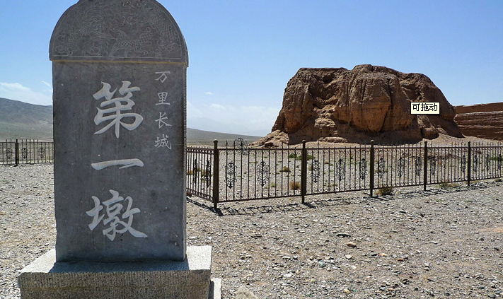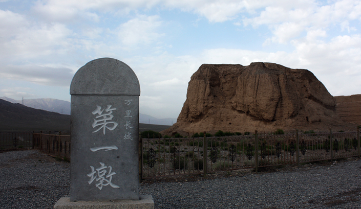 長(zhǎng)城第一墩是明代萬(wàn)里長(zhǎng)城西端起點(diǎn),也是長(zhǎng)城沿線建筑規(guī)模最壯觀、保存最完整的一座古代軍事關(guān)隘。長(zhǎng)城第一墩,又稱討賴河墩,是嘉峪關(guān)西長(zhǎng)城最南端的一座墩臺(tái),也是明代萬(wàn)里長(zhǎng)城最西端的一座墩臺(tái)。長(zhǎng)城第一墩于明嘉靖十八年(公元1539)年由肅州兵備道李涵監(jiān)筑,北距關(guān)城7.5公里,墩臺(tái)矗立于討賴河邊近56米高的懸崖之上。對(duì)于它的雄險(xiǎn),著名長(zhǎng)城專家羅哲文先生曾經(jīng)有過(guò)生動(dòng)的吟詠:“嘉峪關(guān),雄險(xiǎn)畫皆難,墩堡遙遙相互望,長(zhǎng)城道道連關(guān)山,猿臂也難攀”。在一萬(wàn)多華里的明代長(zhǎng)城線上,墩臺(tái)無(wú)數(shù),密如繁星,而嘉峪關(guān)長(zhǎng)城第一墩與河北山海關(guān)渤海之濱的“老龍頭”遙相呼應(yīng),共同構(gòu)筑起中華長(zhǎng)城“龍”的首尾,成就了中華民族“龍”的美名。如果說(shuō)長(zhǎng)城是中華民族的豐碑,那么長(zhǎng)城第一墩就是這座豐碑崛起的地方。現(xiàn)在,這座墩臺(tái)殘高約10米,其底部呈不規(guī)則正方形,底寬14米,內(nèi)部仍呈正方形,長(zhǎng)寬均為6米。用黃土夯筑而成,夯土層厚10~20厘米。“長(zhǎng)城第一墩”碑文由已故的西路軍將領(lǐng)魏傳統(tǒng)題寫,字跡飄逸灑脫,清秀雋永。