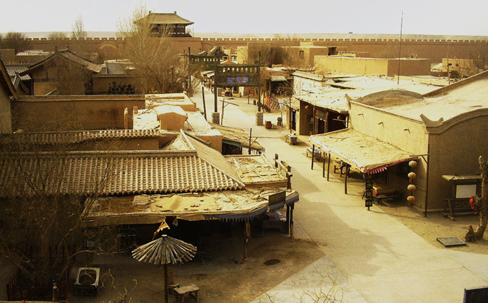 “仿宋沙洲城”、“敦煌電影城”,是1987年為中日合拍大型歷史故事片《敦煌》,以宋代《清明上河圖》為藍本,由日方出資,參考中國古代建筑風格精心設計、建造而成。建筑面積1.27萬平方米。敦煌古城位于大漠戈壁上,融千年西域民俗于一體,城開東、西、南三門,城樓高聳;城內(nèi)由北宋時期的高昌、敦煌、甘州、興慶和汴梁五條主要街道組成,點綴以不同地域的過街樓、佛廟、當鋪、貨棧、絲綢店、酒肆、飯館、住宅等,作為拍攝用道具,互為背景,相輔相成。敦煌古城再現(xiàn)了唐宋時期西北重鎮(zhèn)敦煌的雄姿,被稱為中國西部建筑藝術的博物館,具備拍攝古代西部國邊塞軍事片的獨特優(yōu)勢,版權所有山東聊城聊之旅國際旅行社有限公司,轉(zhuǎn)載必究!現(xiàn)已成為中國西部最大的影視拍攝基地。除《敦煌》一片外,先后在這里拍攝過《封神演義》、《怒劍嘯狂沙》、《新龍門客?!?、《敦煌夜談》、《沙州王子》、《海市蜃樓》等二十多部中外影視劇目?,F(xiàn)已成為敦煌主要的游覽參觀點。敦煌古城位于敦煌市至陽關公路的南側(cè)。距市中心25公里。
