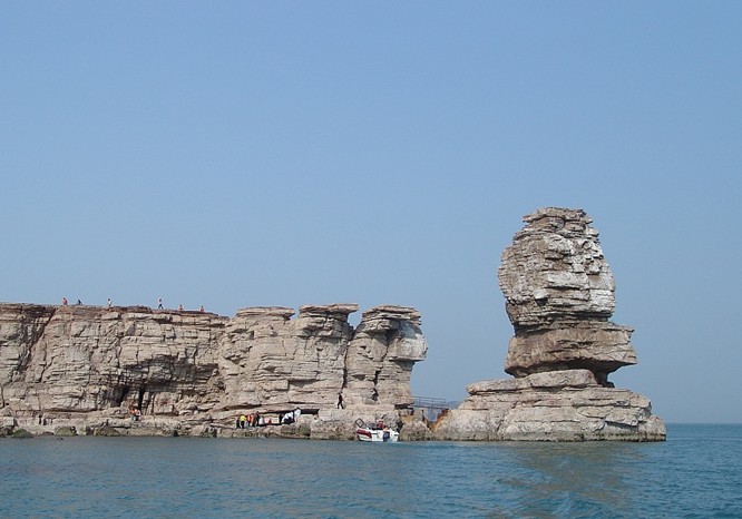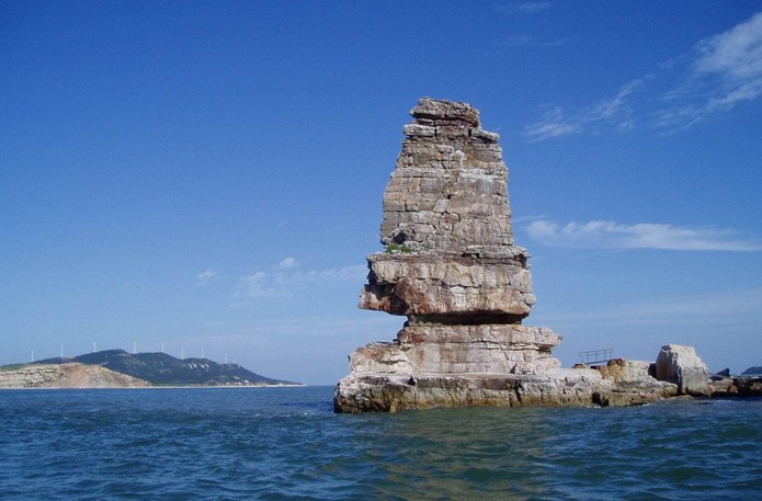 寶塔礁,因礁石似寶塔而得名,位于廟島西北處的犁具把島,高約21米,直徑約5米,其狀巍然,寶塔礁無(wú)論從哪個(gè)角度觀賞,都像一座挺立的巨塔,變換不同的位置,會(huì)領(lǐng)略出不同的天工神韻,讓人覺(jué)得處處皆奇。