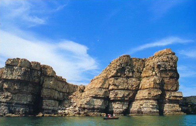 高山島環(huán)島皆是奇徒的海蝕崖壁,據(jù)地質(zhì)專家考證,是由于1億年多年前的燕山構(gòu)造運動和喜馬拉雅山造山運動造成地殼的隆起而形成的半劈陡峭形態(tài)。登高遠望,海闊天空 ,頓生“登斯樓也,寵辱皆忘”之感概。近視,碧海青山,鷗資帆影,32個島嶼盡收眼底,大有一睹長島全貌之快。