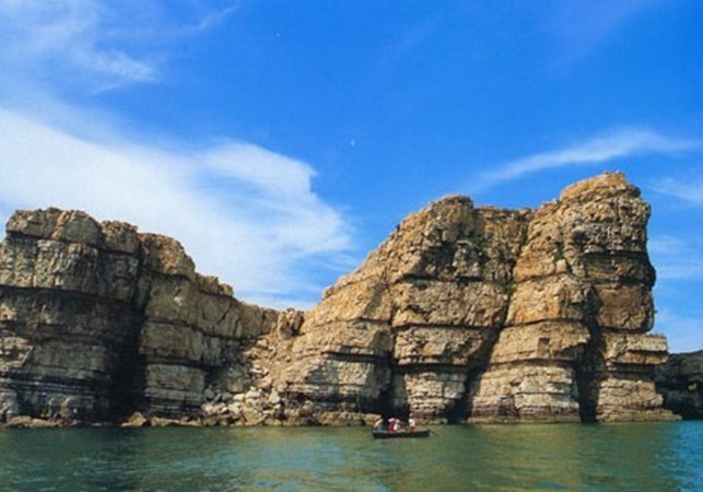 彌陀礁位于山東煙臺市長島縣以北50公里處,由許多小型的礁石和小島組成。自北向南,可分為三個島群:北島群有南隍城島、北隍城島和大欽島、小欽島等。