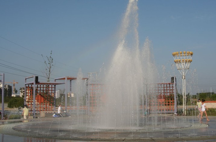 蜆河公園南大門及五龍廣場,總占地13.2萬平方米,其中:主門及兩側(cè)商業(yè)房建筑面積1萬平方米,廣場面積7萬平方米,廣場綠地5萬平方米,人工湖面積6.64萬平方米,總投資1600萬元。五龍廣場中心為五龍雕塑、噴泉,廣場周圍安裝百盞觀賞燈、射燈,夜間一片燈火輝煌。尤其由18根玉白色立柱組成的大門主體,橫跨百米,氣勢恢宏,被省專家譽為“山東第一門”。