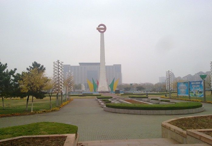 天地廣場位于煙臺(tái)經(jīng)濟(jì)技術(shù)開發(fā)區(qū)中心,北臨長江路,南接珠江路,占地24萬平方米,1994年開工建設(shè),1998年竣工開放。廣場以綠為基調(diào),突出自然植物主體,點(diǎn)綴雕塑、小品等人工景物。中軸線將廣場分成南北兩個(gè)觀賞群,以表達(dá)天地廣場的含義。北為與“天”有意的“太陽”廣場,中心向外采用放射狀道路,以形似陽光,南為與“地”有意的“大地”廣場,中心圍以規(guī)劃的環(huán)狀道路,以形似大地。