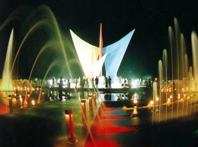 位于煙臺經(jīng)濟技術(shù)開發(fā)區(qū)金沙灘海濱公園正門處,為一圓形階梯狀構(gòu)筑,整個廣場噴泉灑珠,青草滴翠,花紅樹綠,烏囀鶯啼,使人仿佛置身天上的街市,神奇無比。北部最高點矗立著一組風(fēng)帆群雕,在碧海藍天間顯現(xiàn)出勃勃生機,象征著開發(fā)區(qū)在改革開放的大潮中乘風(fēng)破浪,一帆風(fēng)順;入夜,這里華燈齊放,燦爛輝煌,風(fēng)帆通體發(fā)光,昂揚向上,寓意著光輝的前景和時代的精神。