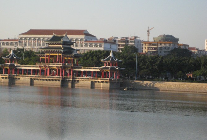 龍舟池陳嘉庚先生于1950年在海灘上筑堤圍墾外、中、內三池。外池俗稱“龍舟池”,寬300米,長800米,總面積24萬平方米。池畔建有式樣各異的“啟明”、“南輝”、“長庚”及“左”、“右”、“逢”、“源”七個亭子。