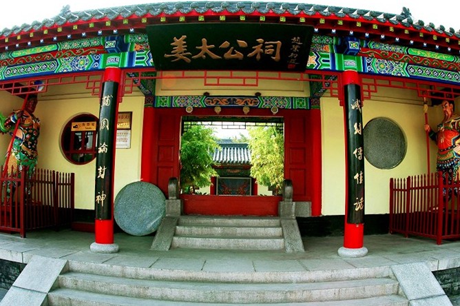 姜太公祠位于臨淄城區(qū),1993年以姜太公衣冠冢為依托而建,總占地面積30000平方米。太公祠是一組中國傳統(tǒng)的中軸對稱、殿堂廟宇建筑。周文王訪賢遇到姜太公,遂請回拜為太師,尊稱太公望。周武王繼位又尊稱師尚父。姜太公輔佐周王朝滅掉殷商,以首功被分封到了齊國。太公治理齊國,采取“因俗簡禮和通商工之業(yè),便魚鹽之利”等政策,注重農(nóng)、工、商并舉,大力發(fā)展生產(chǎn),齊國很快強大起來。