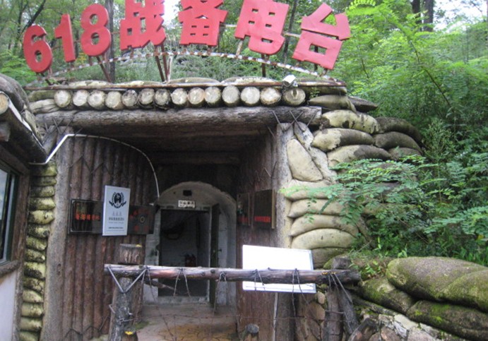 618戰(zhàn)備電臺,原為山東人民廣播電臺戰(zhàn)備臺,是華東地區(qū)規(guī)模最大、保存最完整的一處戰(zhàn)備電臺。它是二十世紀六十年代為適應國防需要,由時任濟南軍區(qū)司令員的楊德志將軍親自選址興建的,位于山東省淄博市沂源縣魯村鎮(zhèn)峨峪村北山中。海拔高度400米,相對高度200米,占地面積229畝,發(fā)射功率50千瓦,能夠覆蓋淄博、臨沂、濰坊、泰安等13個市縣。電臺機房設在山中坑道內,坑道總長470米,施工面積2820平方米。