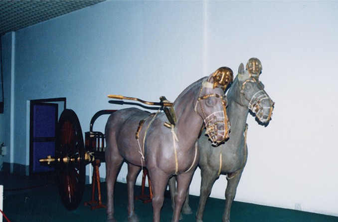 春秋殉馬坑殉戰(zhàn)車10輛,馬32匹,規(guī)模之大,配套之齊全,馬飾之精美,為當(dāng)代全國(guó)之冠,列全國(guó)十大考古發(fā)現(xiàn)之一。古車陳列展廳陳列后李車馬坑出土的各類車和臨淄地區(qū)出土的古代車的復(fù)原車,直至全國(guó)出土的各類古代車復(fù)原車。集中國(guó)古車研究成果之大成,薈華夏歷代車乘珍品之精粹,充分展示了我國(guó)車乘的悠久歷史和造車技術(shù)在世界車輛發(fā)展史上的領(lǐng)先地位.