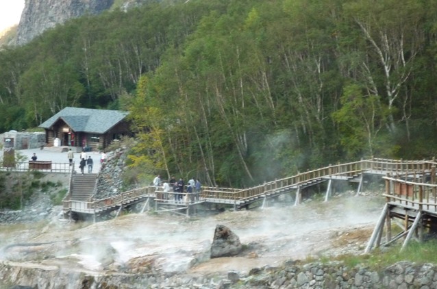 在長白山黑風(fēng)口滾滾黑石下面有幾十處溫泉群。它距離震耳欲聾的長白瀑布不到二里,奔騰咆哮的白河擦邊而過。長白山溫泉屬于高熱溫泉,多數(shù)泉水溫度在攝氏60度以上,最熱泉眼可達82度。