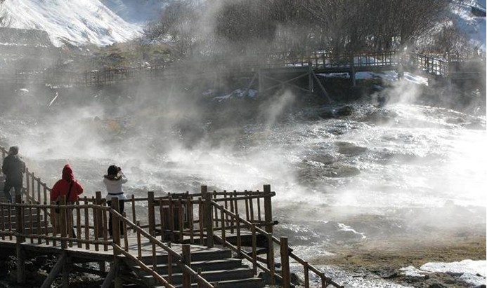 近幾年來,長白山冬季冰雪旅游發(fā)展很快,而露天溫泉浴是最讓人們眼界大開的項目,泉外冰天雪地、冷風(fēng)習(xí)習(xí),水中熱氣繚繞、笑聲陣陣,一冷一熱對比分明,真是人生難得的奇妙經(jīng)歷。