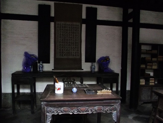 進(jìn)入大門,首先映入眼簾的是前中共中央總書記胡耀邦瞻仰周恩來故居時親筆題寫的四個大字:“全黨楷模”。向北不幾步就是周恩來小時候讀書處——家塾館。里面有周恩來當(dāng)年用過的單人學(xué)桌。在這張學(xué)桌上,他以不同尋常的聰穎和智慧,經(jīng)常和同窗共讀的同輩兄弟用方塊字做聯(lián)句、拼詩的“益智游戲”。