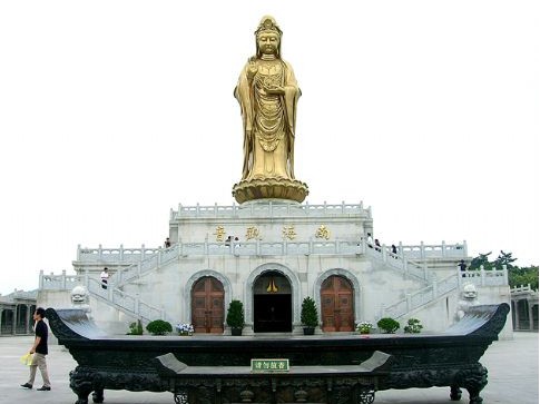 南海觀音露天銅像位于普陀山之東南的龍灣崗巔。菩薩臉如滿月,眉目清秀,左手托法輪,右手結(jié)無畏印,顯現(xiàn)大慈大悲相,光耀天日,壯麗無比。像高33米,重70余噸,乃當今觀音銅像之最,也是海天佛國的象征。版權(quán)所有聊城聊之旅旅行社有限公司,轉(zhuǎn)載必究!佛像基層是面積1000多平方的功德廳,上層供奉500尊形態(tài)各異的觀音銅像,下層大廳飾有觀音靈異故事的大型黃楊木雕和以普陀山景色為題材的彩玉浮雕,精美絕侖。