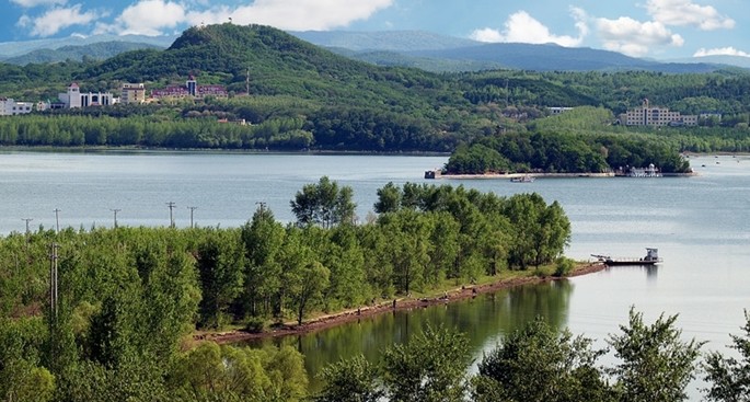 二龍山是國家AAAA級旅游區(qū),位于哈爾濱市東50公里處,東經(jīng)127度27分41秒,北緯45度45分59秒,坐落在古城賓州西南。景區(qū)占地25平方公里,一湖碧水,三面環(huán)山,自然風(fēng)光,美不勝收。這里既有二龍戲珠、長龍臥波、銀峰插翠、碧波唱晚等十大麗景,又有寶島飛虹、湖面飛魚等四大奇觀。是消暑、度假、休閑、療養(yǎng)的好地方,年接待中外游客近百萬人次。