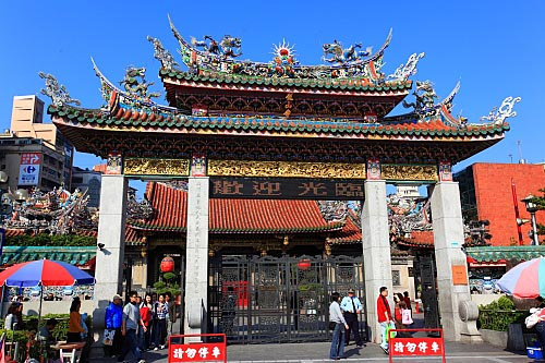 艋舺龍山寺主祀觀世音菩薩,配祀天上圣母、文昌帝君、關(guān)圣帝君等諸神佛,相應(yīng)靈驗,信徒廣眾,香火鼎盛。