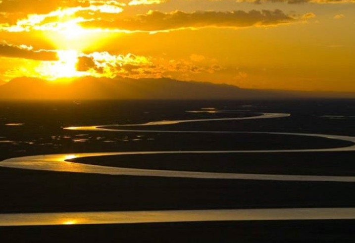 黃河流入后套平原,河面寬達(dá)三公里以上,水勢十分緩慢,河床上滿布沙洲、岔流,還有許多旋流,俗稱“破河”。黃河河水達(dá)洪水位時(shí),形成一片汪洋,不分干岔。這一段黃河的河道,極不穩(wěn)定,常向南北遷移,因此造成許多牛軛湖,俗稱“死河筒”。后套平原由耕地、草原和荒灘相間組成,渠道和林帶縱橫交織,形成黃河沿岸一個(gè)較為完備的排灌區(qū)。