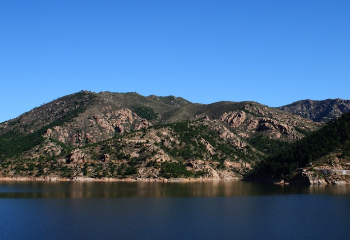 打虎石水庫位于寧城縣西部,老哈河支流 ── 黑里河下游,控制流域面積540平方公里,總庫容1.2億立方米,是內(nèi)蒙古自治區(qū)境內(nèi)的以灌溉為主,兼顧防洪、發(fā)電、養(yǎng)魚、旅游等綜合利用的大型水庫之一,屬水利部一級管理單位。 打虎石水庫橫斷黑里河。由于黑里河水流經(jīng)林區(qū),沿途植被茂密,因此庫區(qū)蓄水含沙量極低,水體蔚藍(lán)清澈。近6000畝的水面坦蕩遼闊,碧波萬頃,水天一色。版權(quán)所有山東聊城聊之旅國際旅行社有限公司,轉(zhuǎn)載必究!每逢盛夏時節(jié),群山倒影,波瀾不驚,鳥飛魚躍,漁船點點,仿佛人間仙境。