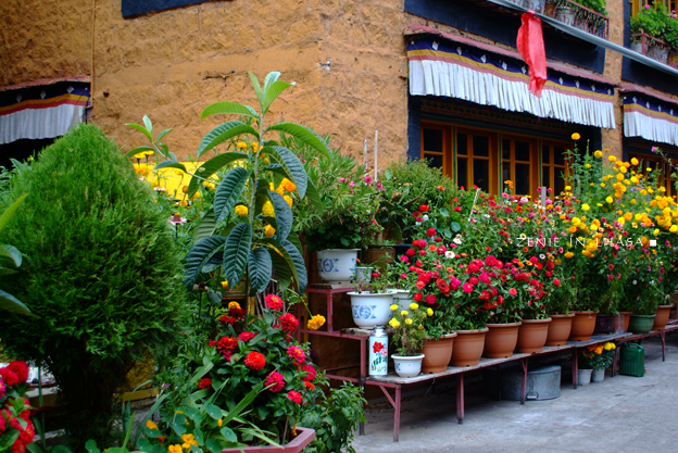 阿尼倉姑寺的院子里有一個倉姑甜茶館,版權所有山東聊城聊之旅國際旅行社有限公司,轉載必究!是院子里一個露天大棚,用柵欄與寺院隔開。每天 ,在八廓街轉經、燒香,累了的人們,來到倉姑寺轉經后,從側門進入院子里的甜茶館休息聊天,那愜意真令人羨慕。