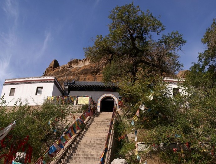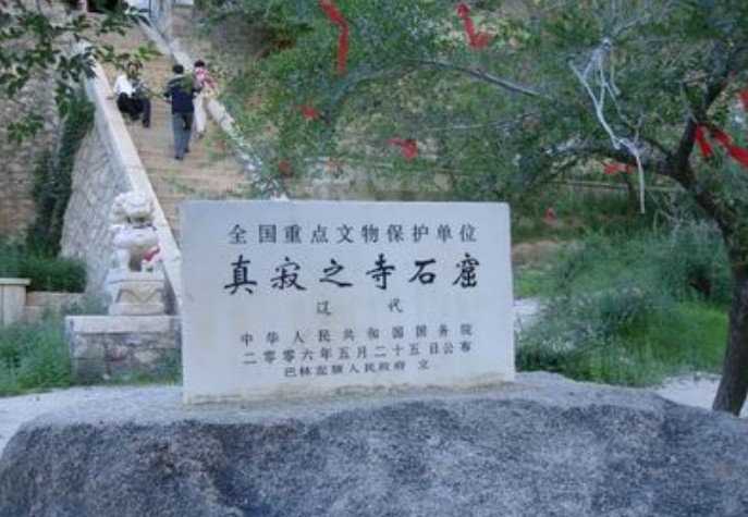 遼代石窟“真寂之寺”即林東后召?gòu)R石窟寺。其寺位于遼上京南15公里的山谷中。石窟開鑿在桃石山東南面陡壁上,分中、南、北三窟??咔笆乔宕m(xù)建的喇嘛廟“善福寺”。中窟眉額刻“真寂之寺”四個(gè)大字,當(dāng)為遼代開鑿石窟的題名。“