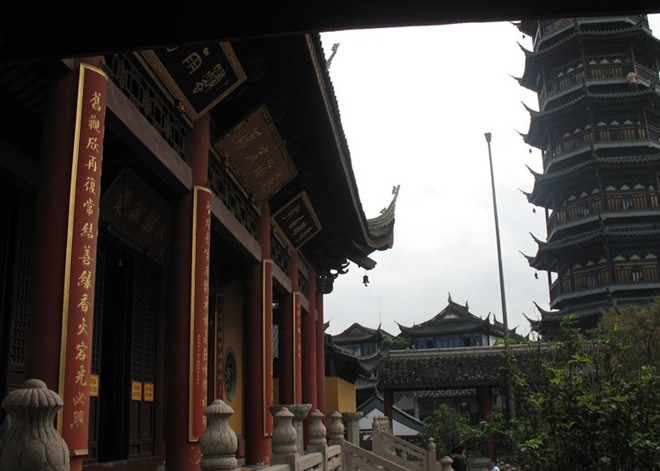 南禪寺有一座七級八面,高43.3米的古塔。傳說是為了制服水患才把塔立在羊腰灣與運河的交會處。 據(jù)《南禪寺記》記載,在北宋雍熙年間(984-988),有僧持缽而來,走進廟中,忽然不見了蹤影,后來發(fā)現(xiàn)寺壁上有該僧的影子,人們信以為佛,建造佛塔,并到蘇北泗州接來了三尊佛像。明代進士無錫人張思安在《南禪寺重修塔碑記》中說:“院之西有溪,曰‘梁溪’,溪之脈與惠山第二泉通。父老相傳云:昔有巨蛟蜿蜒其中,每天地晦暝,輒興風雨,噴腥濤,居民震怖,商賈懷憂。雍熙中,有異僧駐錫于茲,諭于眾曰:蒼龍在耳,宜建浮屠(寶塔)以鎮(zhèn)之,則蛟自潛,版權(quán)所有山東聊城聊之旅國際旅行社有限公司,轉(zhuǎn)載必究!民安業(yè)矣。”這些傳說使南禪寺名聲大振。到了北宋崇寧三年(1104),徽宗趙佶賜塔名為“妙光塔”。妙光塔歷經(jīng)元、明、清多次劫難,現(xiàn)存建筑都是明正統(tǒng)年間所建。1925年,榮宗敬、榮德生、唐申伯等出資做了修復。1930年,曾在這里設(shè)游民習藝所。1980年,人民政府撥??钣枰匀嬲?。1983年被列為市級文物保護單位。1993年,妙光塔按原樣修葺一新,重新對外開放。妙光塔系樓閣式磚塔,八角七層,總高43.3米,是“無錫八景”之一,睛日黑塔之影可以落到數(shù)里外的一座橋下,故名“塔影橋”。歷史上還有許多奇聞異說,最神奇的是相傳發(fā)出過五顏六色直沖云霄的妙光,近已有科學論證,這是雷電作怪。20世紀80年代始,南禪寺建成文化商城,規(guī)模不斷擴大,已建成商業(yè)用房9.5萬平方米,規(guī)劃建設(shè)12萬平方米,似無錫的“城隍廟”,南禪寺已成為人們游玩、購物的好去處。其中妙光街被無錫市定為旅游一條街。