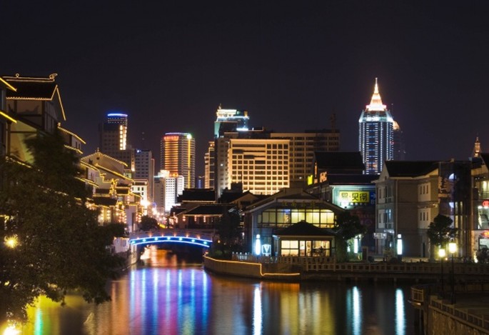 •無錫古運(yùn)河精華區(qū)北段,河面開闊,三里橋一帶,米市尚存