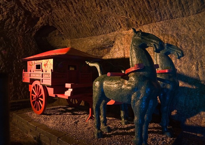 在劉注棺室周圍,分布著廁所、廚房、馬廄等實用居所。中國文化發(fā)展到后來越來越抽象化,即便是王陵,也只是象征性地建上幾間大堂。也只有漢代,人們把死作為生的延續(xù),才會在墓室中有如此紛繁復雜的布置。在劉注的墓中參觀,好像在探望主人的家居,毫無北京帝王陵墓的陰森。
