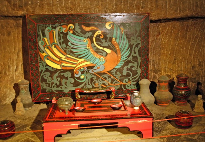 壺門偌大的一座合葬墓,只有一個過道相通。稱之為壺門,這道壺門開鑿得很特別。東壁平直,西壁平面為曲尺形,即北面大而逐漸向南面縮小。