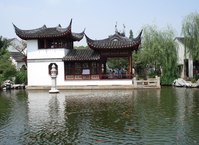 長堤的盡頭便是“徐園”。它是辛亥革命時期軍閥徐寶山的祠堂。園中聽鸝館取名來自“兩只黃鸝鳴翠柳,一行白鷺上青天”的詩意。館內的楠木罩隔,是揚州現(xiàn)存罩隔中的精品。聽鸝館門前的這兩大口鐵鑊,是 1500 多年前的鎮(zhèn)水神器,當年揚州冶煉業(yè)的發(fā)達的揚州經濟的繁盛由此可見一斑。 徐園中有一館、一榭、一亭,外有曲水,內有池塘,花木竹石,恰到好處,充分體現(xiàn)了江南園林的精巧雅致。