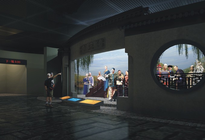 展廳平、立面長(zhǎng)短弧線與直線的有機(jī)結(jié)合,象征揚(yáng)州歷史連綿不斷,充滿無(wú)限生機(jī)和活力。展覽雖沒有刻意尋求造型元素和藝術(shù)符號(hào)來(lái)強(qiáng)化主題,但由形、色、光構(gòu)成的整個(gè)藝術(shù)空間,始終充滿著揚(yáng)州文化特有的品質(zhì)和風(fēng)格。