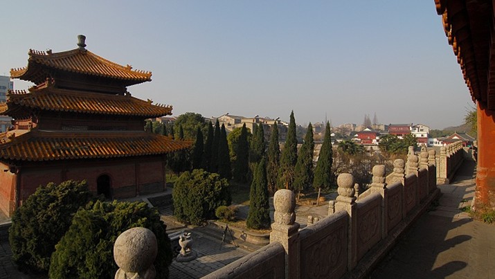 玄妙觀位于荊北路中段,其名體現(xiàn)了道家玄學(xué)思想的精髓。該觀始建于唐代,后毀于兵燹,現(xiàn)存建筑為明萬(wàn)歷十二年(公元1584年)重建,主建筑玉皇閣三重飛檐,狀似塔形,屋頂有一青銅蓮花座,猶如盛開(kāi)的金蓮,與屋頂閃爍的琉璃瓦融為一體,分外耀眼。觀后6米高臺(tái)之上建有三天門和玄武閣,均為重檐歇山頂,是為明清重建之佐證。版權(quán)所有山東聊城聊之旅國(guó)際旅行社有限公司,轉(zhuǎn)載必究!玉皇閣右側(cè)方立有一高大的石碑“九老仙都宮記”碑。此碑立于元順帝至正三年(公元1334年),是江漢平原所能見(jiàn)到的最早的碑刻,碑文記述當(dāng)時(shí)的玄妙觀主持道人唐洞云被元順帝封為八仙后的之第九仙。碑文為元代著名學(xué)士歐陽(yáng)元撰寫(xiě)、元代書(shū)法大家危素手書(shū),其史料及藝術(shù)值均彌足珍貴。
