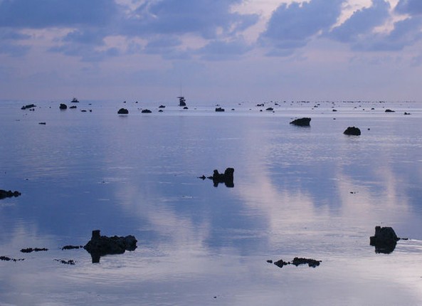 中沙大環(huán)礁是南海諸島中最大的環(huán)礁,全為海水淹沒(méi),水深一般9~26米。大環(huán)礁東側(cè)是深而大的地殼斷裂帶,陸殼和洋殼接觸處以51°~58°陡坡下降到4000米海盆上。大環(huán)礁南部與南沙群島的雙子群礁間海域,是南海最深處(-5559米),熱流量、布格重力和磁力都異常偏高,可能與陸塊漂移有關(guān)。中沙群島中的暗沙邊緣突起、彼此間的斷塊又不相聯(lián),因此造成許多獨(dú)立個(gè)體。斷缺部分成為出入□湖的天然水道?!鹾?nèi)亦散布有暗沙,其中以漫步暗沙最淺,僅9米。