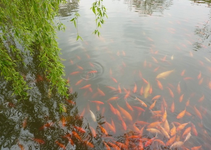 魚樂園是全園的主景。魚樂園中放養(yǎng)著數(shù)萬尾金鱗紅鯉,游人在觀魚池的曲橋上投入食餌或鼓掌相呼,群魚就會從四面八方游來,爭奪食餌,紛紛躍起,染紅半個湖面,蔚為壯觀。在這里縱情魚趣,人知魚之樂,魚知人之情,人魚相悅,其樂融融。 紅鯉,也叫火鯉,鯉科 , 分布廣泛,可在各類水域生活。是養(yǎng)殖的主要對象,全年均有生產(chǎn),以春秋兩季產(chǎn)量較高。體延長,側(cè)扁,背部隆起。口下位,有吻須和頜須各l對。鰓耙短。腹部圓。鱗片大而圓。側(cè)線明顯,微彎。尾鰭深叉形。體色紅。