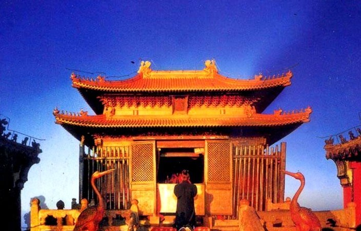 金殿:為首批全國重點文物保護單位。明代銅鑄仿木結構宮殿式建筑,位于天柱峰頂端的石筑平臺正中,面積約160 平方米,朝向為東偏南8°。殿面寬與進深均為三間,闊4.4米,深3.15米,高5.54米。四周立柱12根,柱上疊架、額、枋及重翹重昂與單翹重昂斗拱,分別承托上、下檐部,構成重檐底殿式屋頂。版權所有山東聊城聊之旅國際旅行社有限公司,轉載必究!正脊兩端鑄龍對峙。四壁于立柱之間裝四抹頭格扇門。殿內頂部作平棋天花,鑄淺雕流云紋樣,線條柔和流暢。地面以紫色石紋墁地,洗磨光潔。屋頂采用“推山”做法為特點。殿內于后壁屏風前設神壇,塑真武大帝坐像,左侍金童捧冊,右侍玉女端寶,水火二將,執(zhí)旗捧劍拱衛(wèi)兩廂。壇下玄武一尊,為金婉合體。壇前設香案,置供器。神壇上方高懸餾金匠額,上鑄清圣祖愛新覺羅•玄燁手跡“金光妙相”四字。殿外檐際,懸盤龍斗邊餾金牌額,上豎鑄“金殿”二字。殿體各部分件采用失蠟法鑄造,遍體餾金,無論瓦作、木作構件,結構嚴謹,合縫精密,雖經(jīng)五百多年的嚴寒酷暑,至今仍輝煌如初,顯示中國鑄造工業(yè)發(fā)展的高度水平,堪稱現(xiàn)存古建筑和鑄造工藝中的一顆燦爛明珠。