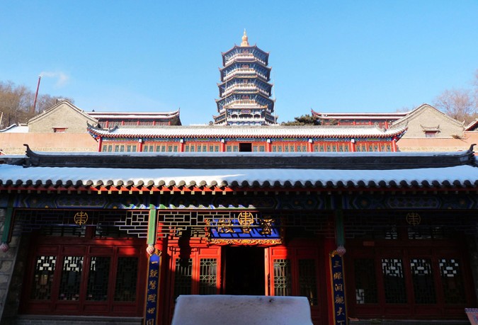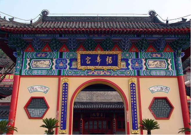 第一層為山門,建有馬殿。青石臺(tái)基,“福壽宮”匾額高懸。殿內(nèi)有彩塑紅白二馬,經(jīng)左右青龍白虎兩個(gè)配門踏甬道進(jìn)入二層大殿。左右鐘鼓二樓。正殿關(guān)岳殿,正中關(guān)公神像,前供岳飛神位。殿內(nèi)東為龍王神像,西為財(cái)神。版權(quán)所有山東聊城聊之旅國(guó)際旅行社有限公司,轉(zhuǎn)載必究!東配殿為兩仙堂,內(nèi)供紀(jì)仙、柳仙。大殿東西各有配房五間,東為講經(jīng)堂,西為大仙堂。第三層為三座大殿。中為碧霞宮,東殿為呂祖殿,西殿為大仙堂。第四層?xùn)|西二大殿,東殿為三宮殿,西殿為娘娘殿。最頂一層為三清殿。