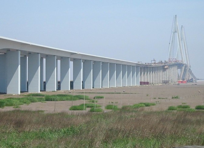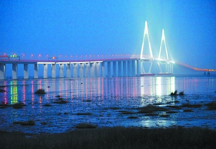 杭州灣跨海大橋是一座橫跨中國(guó)杭州灣海域的跨海大橋,它北起浙江嘉興海鹽鄭家埭,南至寧波慈溪水路灣,全長(zhǎng)36公里,比連接巴林與沙特的法赫德國(guó)王大橋還長(zhǎng)11公里,已經(jīng)成為中國(guó)世界紀(jì)錄協(xié)會(huì)世界最長(zhǎng)的跨海大橋候選世界紀(jì)錄,成為繼美國(guó)的龐恰特雷恩湖橋和青島膠州灣大橋是目前世界上最長(zhǎng)的跨海大橋后世界第三長(zhǎng)的橋梁。