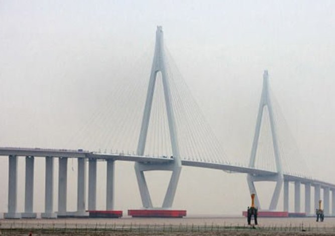 杭州灣跨海大橋工程共使用鋼材767000噸,原本預(yù)計(jì)2009年完工,正好趕上2010年上海世博會(huì),一箭雙雕——但不管它的過去如何,現(xiàn)在又如何,都會(huì)名留青史——成為一方建筑奇觀!