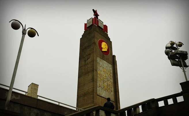 防洪紀(jì)念碑建于1969年,是為“毛澤東同志為武漢人民戰(zhàn)勝1954年洪水題詞”而建的紀(jì)念碑。該碑地處武漢市漢口濱江公園江堤上,面向大江,占地1160平方米。臺基高4.9米,正面與兩側(cè)設(shè)寬大臺階,四周圍以護(hù)欄。碑身高37米,碑頂立直徑1.8米五角紅星,下飾紅綢、葵花簇?fù)硖彀查T圖案。碑身正面鑲嵌乳白色大理石,上有用鋁板鍍金制成的毛澤東親筆題詞:“慶祝武漢人民戰(zhàn)勝了一九五四年的洪水,還要準(zhǔn)備戰(zhàn)勝今后可能發(fā)生的同樣嚴(yán)重的洪水?!?/p>