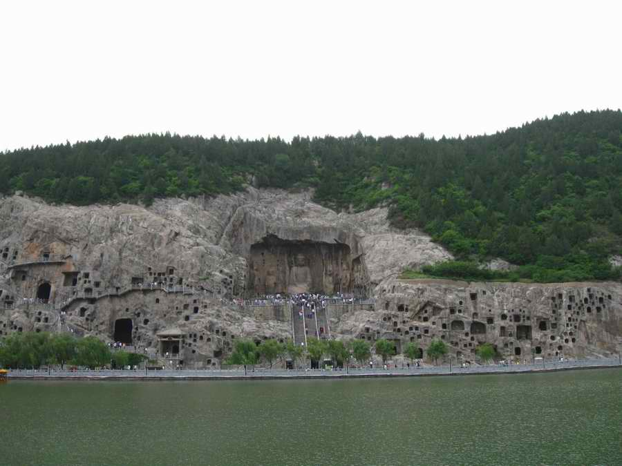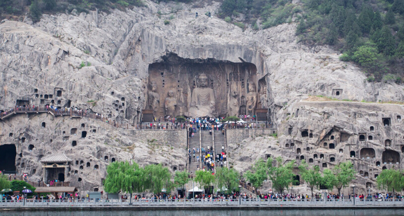 龍門石窟是中國(guó)三大石窟之一(另外兩大石窟為:山西云岡石窟、甘肅敦煌莫高窟),位于洛陽(yáng)市城南6公里的伊闕峽谷,這里香山和龍門山兩山對(duì)峙,伊河水從中穿流而過,古稱“伊闕隋煬帝遷都洛陽(yáng)后,將把皇宮的正門正對(duì)伊闕,從此,伊闕便被人們習(xí)慣的稱為龍門。龍門自古為險(xiǎn)要關(guān)隘,交通要沖,向?yàn)楸冶貭?zhēng)之地。因山清水秀,環(huán)境清幽,氣候宜人,被列入洛陽(yáng)八大景之冠,唐代大詩(shī)人白居易曾說:“洛都四郊,山水之勝,龍門首焉”,此處素為文人墨客觀游勝地;又因石質(zhì)優(yōu)良,宜于雕刻,故而古人擇此而建石窟。這里青山綠水、萬象生輝,伊河兩岸東西山崖壁上的窟龕星羅棋布、密如蜂房。