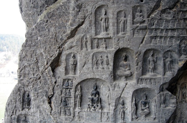 門石窟是中國(guó)石刻藝術(shù)寶庫(kù)之一,位于河南省洛陽(yáng)市南郊伊河兩岸的龍門山與香山上。開鑿于北魏孝文帝遷都洛陽(yáng)之際,之后歷經(jīng)東魏、西魏、北齊、隋、唐、五代的營(yíng)造,南北長(zhǎng)達(dá)1公里,至今存有窟龕2345個(gè),造像10萬余尊,碑刻題記2800余品。其中“龍門二十品”是書法魏碑精華,褚遂良所書的“伊闕佛龕之碑”則是初唐楷書藝術(shù)的典范。龍門石窟延續(xù)時(shí)間長(zhǎng),跨越朝代多,以大量的實(shí)物形象和文字資料從不同側(cè)面反映了中國(guó)古代政治、經(jīng)濟(jì)、宗教、文化等許多領(lǐng)域的發(fā)展變化,對(duì)中國(guó)石窟藝術(shù)的創(chuàng)新與發(fā)展做出了重大貢獻(xiàn)。2000年入選世界文化遺產(chǎn)。