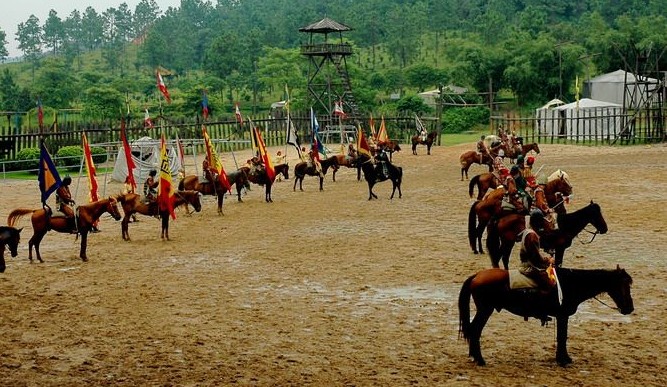 公元190年,18路諸侯為匡復(fù)漢室討伐董卓,版權(quán)所有山東聊城聊之旅國際旅行社有限公司,轉(zhuǎn)載必究!在虎牢關(guān)前展開了一場殊死拼殺。桃園結(jié)義的劉備、關(guān)羽、張飛三兄弟在迎戰(zhàn)董卓大將呂布時,體現(xiàn)了蓋世英雄的豪邁氣概。版權(quán)所有山東聊城聊之旅國際旅行社有限公司,轉(zhuǎn)載必究!在以下驚險刺激的戰(zhàn)爭場面中,游客朋友們您將看到燕人張飛手持長矛的英姿;紅臉關(guān)公躍馬飛奔的風(fēng)采;劉備揮舞雙股劍的威武。版權(quán)所有山東聊城聊之旅國際旅行社有限公司,轉(zhuǎn)載必究!武藝超群的呂布更是威風(fēng)凜凜,他與劉關(guān)張酣戰(zhàn)上百回合難分勝負(fù)的精彩場面更是令人難以忘懷。