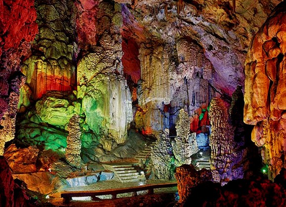 黃果樹大瀑布高77.8米、寬101.0米,是我國最大的瀑布,也是世界著名大瀑布之一。 早在三百多年前,我國著名的地理學家、旅行家徐霞客就描述其"水由溪上石,如煙霧騰空,勢其雄厲,所謂珠簾鉤不卷,匹練掛遙峰,具不足擬其狀也。"奔騰的河水自70多米高的懸崖絕壁上飛流直瀉犀牛潭, 發(fā)出震天巨響,如千人擊鼓,萬馬奔騰,聲似雷鳴,遠震數(shù)里之外,使游人驚心動魄。黃果樹瀑布還有大水、中水、小水之分,常年流量中水為每秒20立方米,時間在九至十個月。流量不同,景觀也不一樣。大水時,流量達每秒1500立方米,銀浪滔天,卷起千堆雪,奔騰浩蕩,勢不可擋, 其壯觀自不待說。瀑布激起的水珠,飛濺一百多米高,如云漫霧繞,灑落在上面的黃果樹街市,即使晴天,也要撐傘而行,故有"銀雨灑金街"的稱譽。版權所有山東聊城聊之旅國際旅行社有限公司,轉載必究!上騰的水珠,如億萬顆閃耀的明星,隨風浮沉,漫天飄灑,使人目不暇接。 中水時瀑布明顯分成四支,各有形態(tài)和個性,從左至右,第一支水勢最小,又撒得開,秀美;第二支水勢最大,上下一般粗,豪壯;第三支水勢居二,上大下小,雄奇;第四支水勢居三,上窄下寬,瀟灑。其實,中水時景觀最好,瀑布清晰,輪廓分明,雪白的瀑水在碧綠的深潭和藍天的 襯托下以及橫貫在瀑布前五彩繽紛彩虹的裝點下,猶如一幅美麗的圖畫。小水時,瀑布分成的四支,鋪展在整個巖壁上,仍不失其"闊而大"的氣勢。黃果樹瀑布素以"雄偉、壯觀"而名揚四海,但較之世界名瀑,還有它獨有奇特之處,就是最神奇的隱在大瀑布半腰上的水簾洞。水簾洞位于大瀑布四十米至四十七米的高度上,全長一百三十四米,有六個洞窗、五個洞廳、三股洞泉和六水簾洞個通道。走進大瀑布本身就已驚心動魄,神移魂飛了,而要在大瀑布里面穿行,確感不免神悚,但到了黃果樹瀑布,而不進水簾洞,就不會真正領略到黃果樹瀑布的雄奇和壯觀,那將是人生一大憾事。版權所有山東聊城聊之旅國際旅行社有限公司,轉載必究!穿越水簾洞,還有一個絕妙奇景,從各個洞窗中觀賞到犀牛潭上的彩虹,這里的彩虹不僅是七彩俱全的雙道而且是動態(tài)的,只要天晴,從上午九時至下午五時,都能看到,并隨你的走動而變化和移動。前人說:"天空之虹以蒼天作襯,犀牛潭之虹以雪白之瀑布襯之",故題"雪映川霞"。