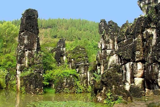 天星景區(qū)是黃果樹風景區(qū)中已全部開發(fā)的景區(qū),景區(qū)規(guī)劃面積7平方公里,開發(fā)游覽面積4.5平方公里,分 為三個相連的片區(qū),即:天星盆景區(qū)、天星洞景區(qū)和水上石林區(qū)。這里石筍密集,植被茂盛,水到景成,集山、水、林、洞為一體。天星盆景區(qū)長約800米,位于500米長伏流表面和河岸西側。有大大小小的天然山石及水石盆景。一條三公里的石板小道,穿行于石壁、石壕、石縫之中,逶迤于盆景之上。沿小道游覽,抬頭是景、低頭是景,前后左右都是景,仿佛到了天上的仙境,地下的迷宮。漫步其間,既領略山水之美、又可品味石林之雄奇。版權所有山東聊城聊之旅國際旅行社有限公司,轉載必究!近處石林,遠處群山,倒映碧水之上,展現(xiàn)在眼前的是一幅色彩淡雅景色協(xié)調的天然山水畫。有的還可撐上竹筏,穿行于峽谷、石林之中,真可謂輕舟蕩碧波,人在畫中游。天星盆景區(qū)還有美女榕、仙山群掌、歪梳石、熊貓抱竹、雄鷹展翅等形態(tài)十分畢真的天然景觀。天星洞景區(qū)在天星景區(qū)中段,除游覽觀賞洞內的鐘乳石外,洞外景觀也很特別,一線天高長均在二十多米而且狹窄;冒水潭是暗河出口,大水時,憑伏流沖擊的壓力,水可以沖起五六米高,甚為壯觀。水上石林區(qū),此段河床寬闊達400米,面積約0.4平方公里的石林就長在河床之中,任河水長年沖刷。石林間長著大片的仙人掌和小灌木,終年點綴著綠蔭。冰冷的石頭上,展現(xiàn)的都是生命的繁榮,所謂"石上流水,水上有石,石上有石,石上又有樹。"水上石林區(qū)有很多景觀,如群榕聚會、根王、根墻屏障、盤根畫壁、仙女飛天等,銀鏈墜潭瀑布和星峽飛瀑也分別處在水上石林的左右二側。 銀鏈墜潭瀑布,位于天星景區(qū)水上石林左上方。在黃果樹瀑布群中,它既不是以高取勝,也不是以闊或大驚人,而是以它那千絲萬縷的情態(tài)和如泣如訴的瀑聲,讓人看見就不想離開。版權所有山東聊城聊之旅國際旅行社有限公司,轉載必究!這個瀑布只有十余米高,上面成漏斗形,底部是槽狀溶潭。在潭沿面上隆起的石包,象一張張下覆的蓮葉,交錯搭連,河水在每一張葉面上均勻鋪開,縱情漫流,象千千萬萬條大大小小的銀鏈,輕音嚷嚷地緩緩墜入溶潭,永遠沒完沒了。