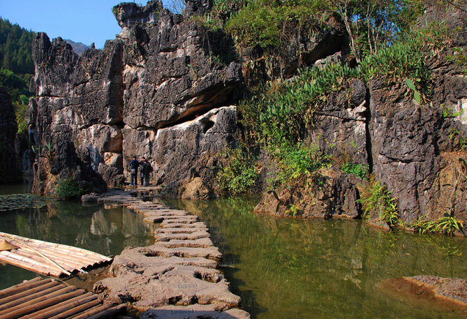 天星橋景區(qū)位于黃果樹(shù)大瀑布下游7公里處,這里主要觀(guān)賞石、樹(shù)、水的美妙結(jié)合,是水上石林變化而成的天然盆景區(qū)。