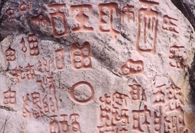 莊善詩云:是孰紅崖字間奇,為殷為漢尚猜疑。何因禹跡窮梁跡,曬甲于就竟屬誰?天書的文學(xué),無論是堯舜殷周,還是秦漢宋明;無論古文馴釋,還是秘符破解,大多數(shù)學(xué)者都在侖頡夫子所造的漢字中遨游,認(rèn)定天書非漢文字莫屬。其實(shí)這種自負(fù)的結(jié)果,除了固李自封,裹足不前外,無法開展破解天書的主體思維。清代學(xué)者趙之謙,根據(jù)關(guān)嶺地區(qū)自古的居民多是少數(shù)民族的特點(diǎn),提出了天書文字是"苗民古語"新穎看法。當(dāng)然,這里苗民"工字,泛指貴州境內(nèi)的少數(shù)民族。民國初年的教育總長任可澄發(fā)揮了"苗民古書"的觀點(diǎn),認(rèn)為天書"非篆非隸非八分,不僅非后漢文學(xué),并非漢族文字"。《貴州通史.金石志》亦云:"字勢頗類蘩文"。"茲地自漢以來,久為盧鹿族(即今彝族)居地,或竟出至于此族。"