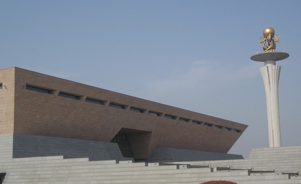 2007年11月29日,洛陽博物館新館開工建設(shè)。新館位于城市的中軸線上,北臨風(fēng)光旖旎的洛浦公園,南接初具規(guī)模的隋唐城遺址植物園,環(huán)境優(yōu)雅,交通便利,占地300畝,建筑面積4.2萬平方米,總投資3.5億元。整體建筑外觀為大鼎造型,寓意“鼎立天下”,在設(shè)計(jì)理念上充分體現(xiàn)了洛陽十三朝古都的歷史內(nèi)涵和文化特色。根據(jù)建設(shè)計(jì)劃,設(shè)施先進(jìn)、功能完善的洛陽博物館新館建設(shè)工程于2009年牡丹花會(huì)期間投入使用。