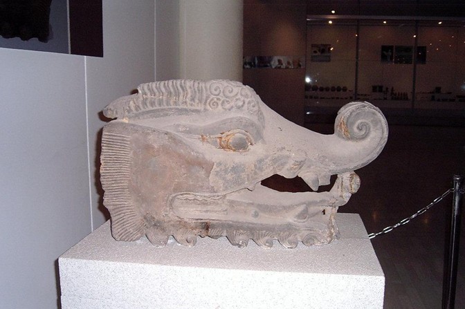 這尊石辟邪1992年12月出土于孟津縣油坊街村。它由整塊石灰?guī)r雕成,長2.97米,寬0.9米,高1.9米,昂首挺胸,張嘴吐舌,威風(fēng)凜凜,栩栩如生,是不可多得的漢代石雕藝術(shù)精品。